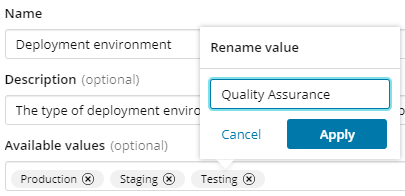 - (Optional) Define one or more values for this custom property. To define each value: