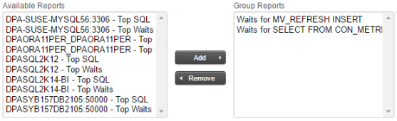 Select the reports you want to add or remove, and then click the Add or Remove button.