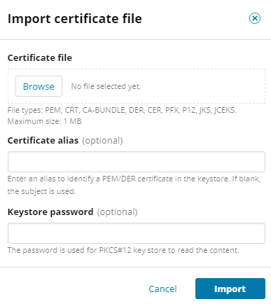 The Import certificate file dialog box opens.