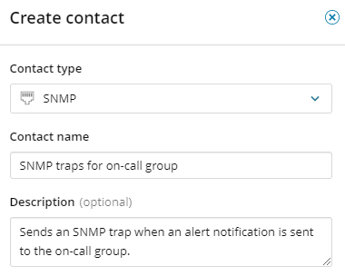 For example, when an alert reaches a certain level, you might want to send an email to the on-call personnel and send a trap to the NMS. You can add the SNMP contact to the On Call group.