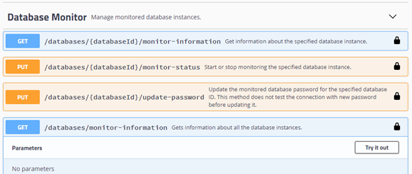 Click GET/databases/monitor-information to expand it.