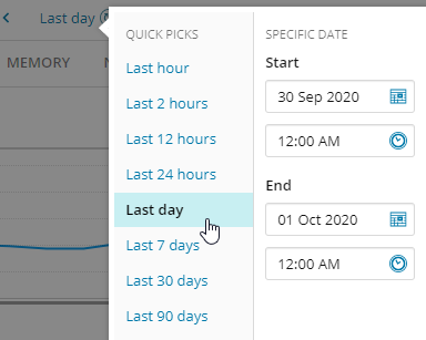 To view annotations or information about VMware events (for instances that run on a VM), hover over a dot on the line above a chart. These events can sometimes explain changes in resource metrics.